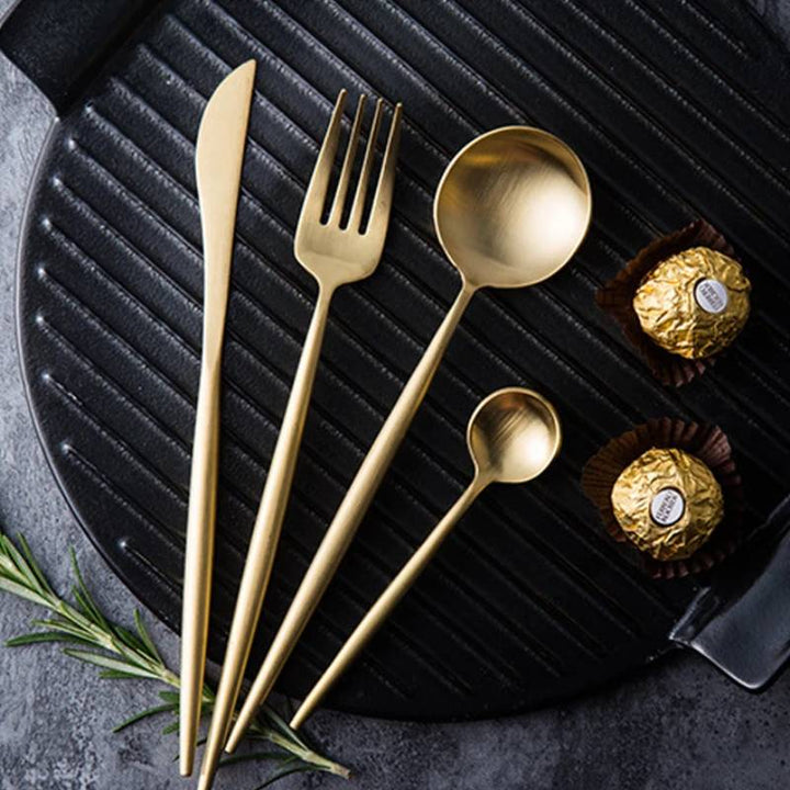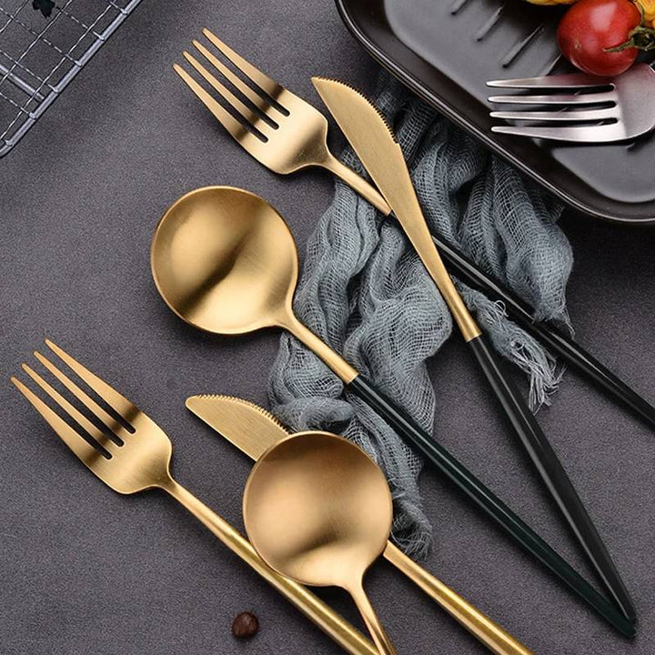 24 Peças: O conjunto inclui 6 facas de mesa, 6 garfos de mesa, 6 colheres de mesa e 6 colheres de chá, proporcionando tudo o que você precisa para servir uma refeição completa para até 6 pessoas.