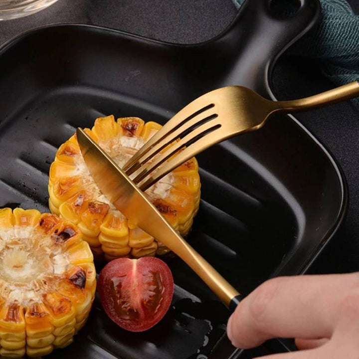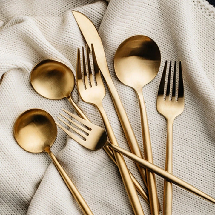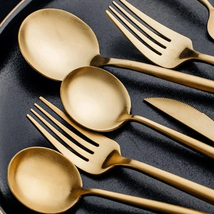 Adicione um toque de luxo à sua mesa com nosso faqueiro dourado. Cada peça é cuidadosamente revestida para proporcionar um brilho deslumbrante, elevando o charme de qualquer refeição.