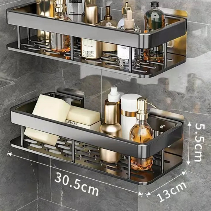 Simplifique sua organização com a Prateleira de Parede de Alumínio Sem Perfuração. Elegância, praticidade e funcionalidade em um único produto!