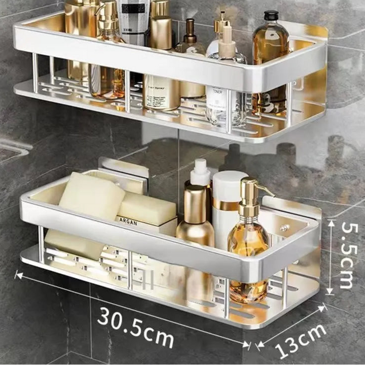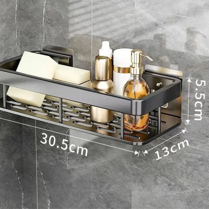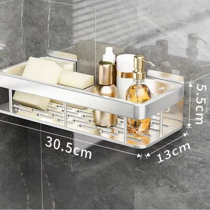 Esqueça ferramentas complicadas ou perfurações que deixam marcas indesejáveis nas paredes. Com o sistema adesivo ultra resistente, a instalação é prática, segura e livre de sujeira. Além disso, o design robusto garante uma excelente capacidade de suporte, permitindo armazenar até 22kg sem risco de queda. Seja para organizar produtos de banho ou utensílios de cozinha, esta prateleira atende a todas as suas necessidades com máxima eficiência.