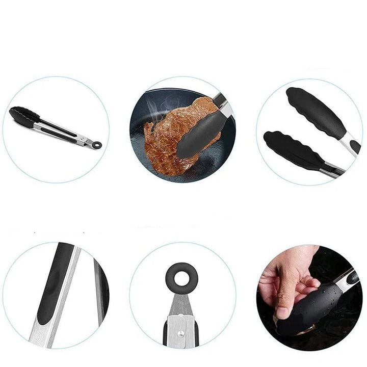 Revestimento de Silicone Antiderrapante: O revestimento de silicone na ponta da pinça proporciona uma aderência segura em uma ampla variedade de alimentos, evitando que eles escorreguem ou se danifiquem durante o manuseio.